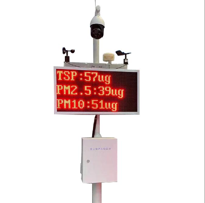 揚(yáng)塵噪聲監(jiān)測(cè)設(shè)備包含:PM2.5,PM10,TSP傳感器,溫濕度傳感器,風(fēng)速傳感器,風(fēng)向傳感器,噪聲模塊,LED顯示屏,配電箱,立桿。