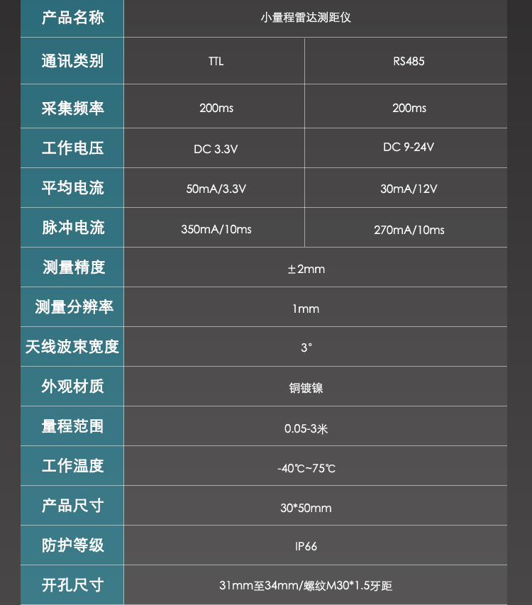 80G雷達(dá)物位計(jì),支持485協(xié)議和串口通信UARTT應(yīng)用。產(chǎn)品最大量程可以達(dá)到3m,盲區(qū)可以